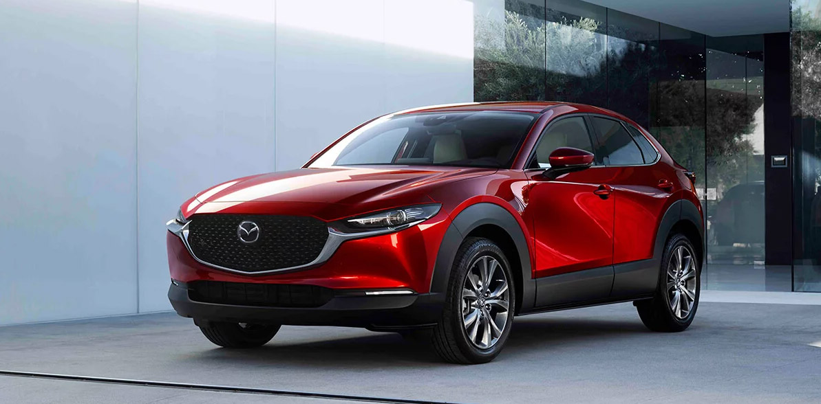 Tampilan depan Mazda CX-30 berkarakter dengan desain KODO khas Mazda yang memberi kesan elegan. Gril yang berukuran besar dipadu lis berwarna silver pada bagian bawah dan menyambung hingga lampu utama. Lampu LED sudah disematkan pada Mazda CX-30. Bentuk lampu yang pipih dan sudah mengadopsi teknologi LED diklaim membuat Mazda CX-30 mempunyai penerangan lebih baik